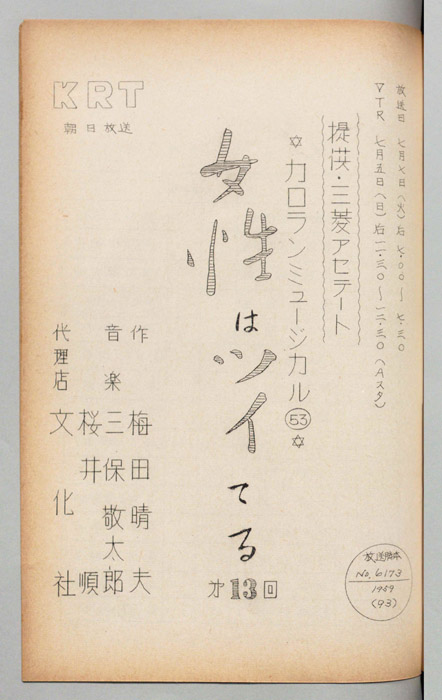 主な出演 : 中原美紗緒,宮地晴子,万里陽子,旗照夫,宇治かほる,三木鮎郎,牟田悌三,岡奈津美,松波佐保子,近藤玲子バレエ団
