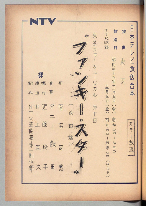 主な出演 : ペギー葉山,旗照夫,牟田悌三,横浜シゲミ,小薬俶子,藤井友子,(踊り)近藤玲子バレエ団