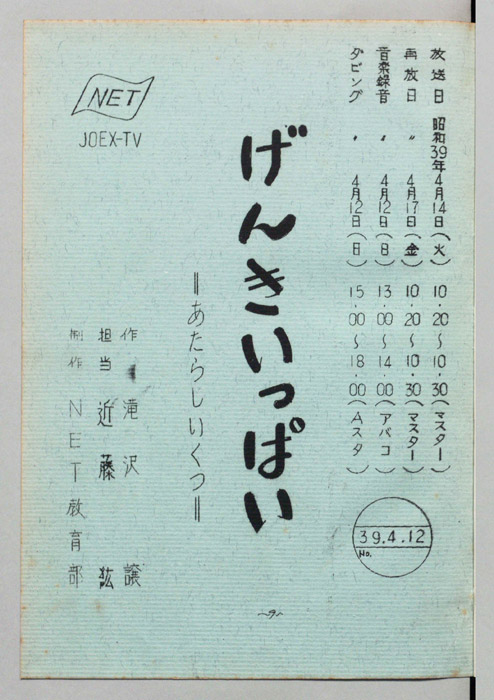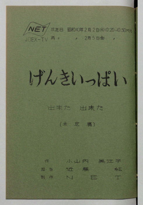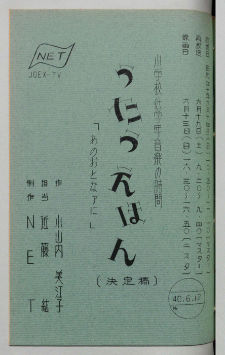 主な出演 : 根本嘉也,西沢和子,石崎恵美子,千葉南海子アナウンサー,(ゲスト)井本みちる,(合唱)川越市立高階小学校児童,