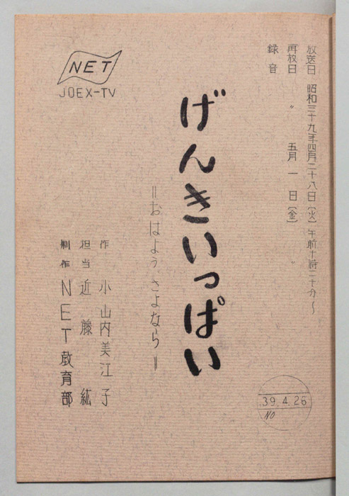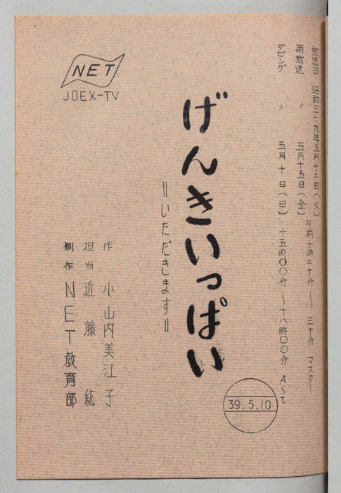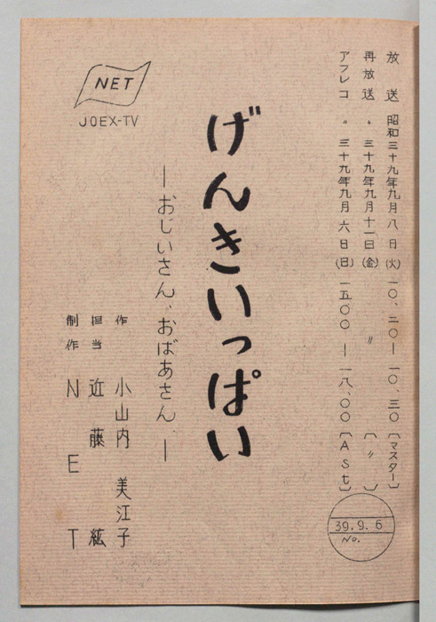 主な出演 : 根本嘉也,石黒恵美子,西沢和子,千葉南海子アナウンサー,(ゲスト)小海智子,川越市立高階小児童