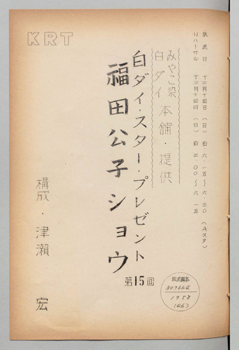 主な出演 : 笠置シヅ子,村田正雄,逗子とんぼ,青江奈美,山田喜芳,中村すみ,今泉芳春,磯野秋雄,天草四郎,飯島秀郎,大島久子,假野和子,真野恭子- 作家 : 西川清之,(監修)菊田一夫