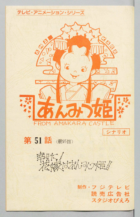 主な出演 : (あんみつ姫)小山茉美,(団子の守)神山卓三,(しぶ茶)京田尚子,(家老)八奈見乗児,(柿の種介)千葉繁,(だんご)吉田美保,(もなか)今井洋子,(きなこ)西原久美子,(かのこ)前田雅恵,(あんこ)江沢昌子,(語り)大野智子,[(吾助)北【あんみつ姫】あまから城のお姫様「あんみつ姫」は、器量がよく優しい性格をしているが、やんちゃでおてんばなところがあり、その好奇心から城の中だけでなく、城下町でも自由奔放な行動をしては周囲の人々を困らせていた。ア