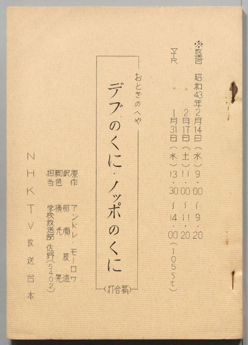 主な出演 : 橋満耕司,山本保夫,伊藤彰憲,塩月徳子,美島あかり,名取幸政,清水照夫,長谷川弘,島可津見,川崎真子,吉田正子,代田鑑之,坂本法子,山本辰雄,(ナレーター)岸田今日子
