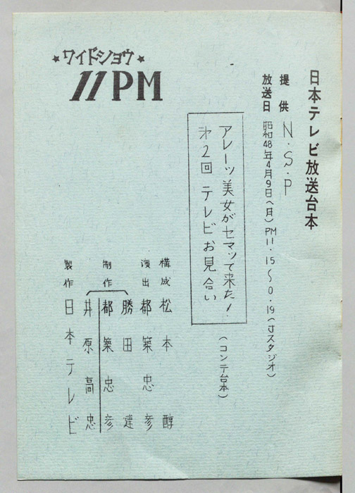 大橋巨泉,松岡きっこ,宇崎真,木下裕子,久里洋子,松原淳とニューサラブレッズ