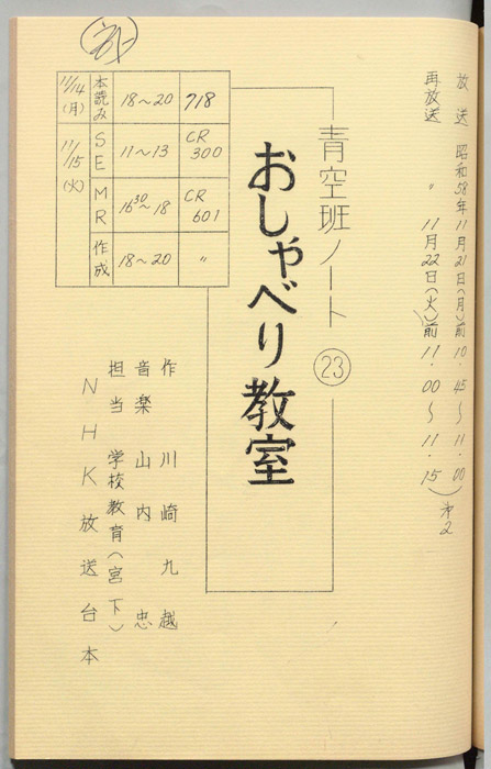 主な出演 : 井昌和,小島正,皆川正也,吉田竜也,三原礼二,北条明,斉藤由香,原田ゆり子,黒川由香利,杉浦理恵,酒井いずみ,高橋いずみ,澤井美奈,笹野志津佳,大橋雅子,伊藤紀子,順田昭子,佐藤利佳,鳥居淑子,藤原理恵,堀口順子,関千香子,石沢由紀子,藤田直子- 作家 : 小川英,古内一成