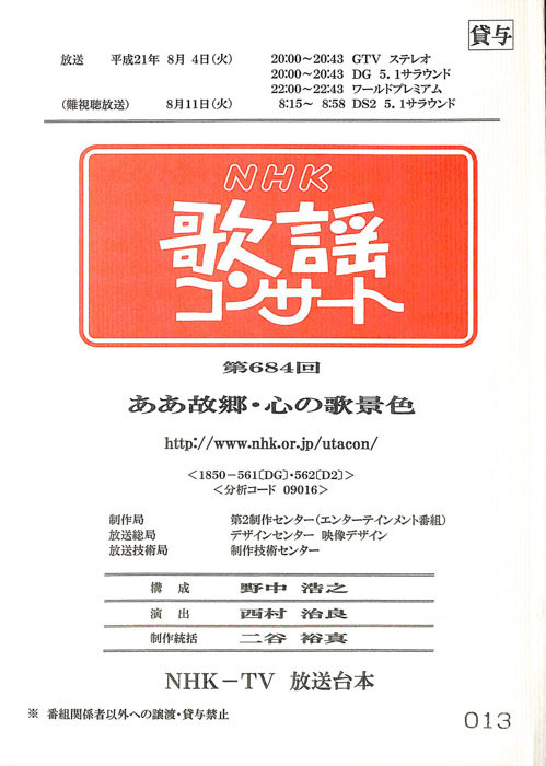 - 放送局 : NHK