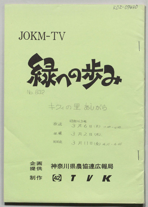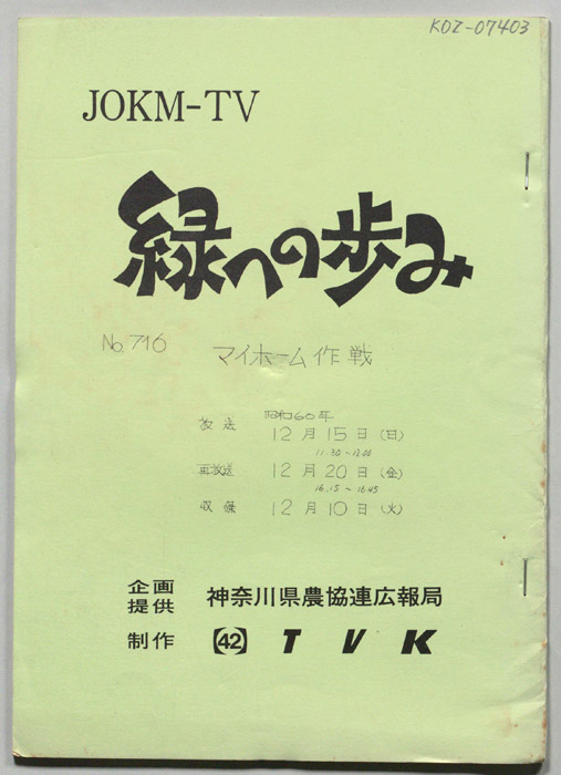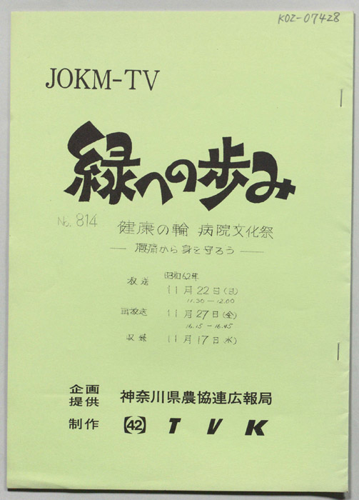 主な出演 : 桜井キヨ枝,宮治トキ子,川口美智子,高崎みち子,三堀義一,三嶽喜一,佐藤春雄,藤沢市農協即売部の皆さん,(司会)鹿野浩四郎,野中美木子