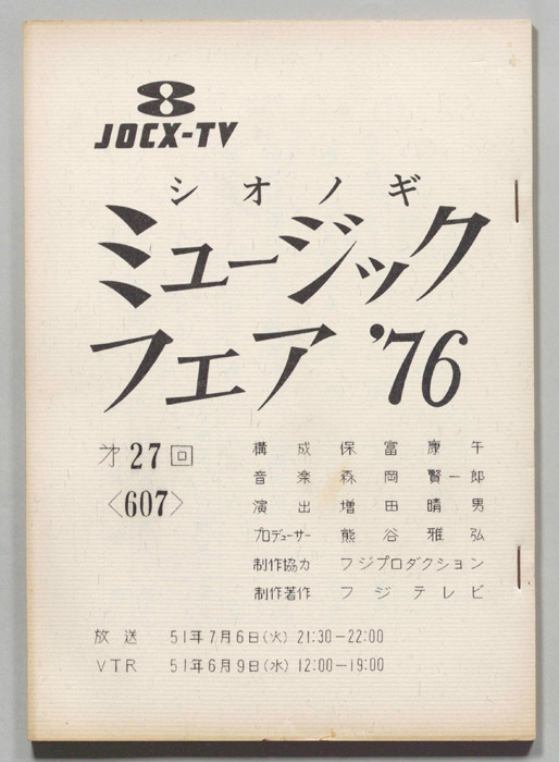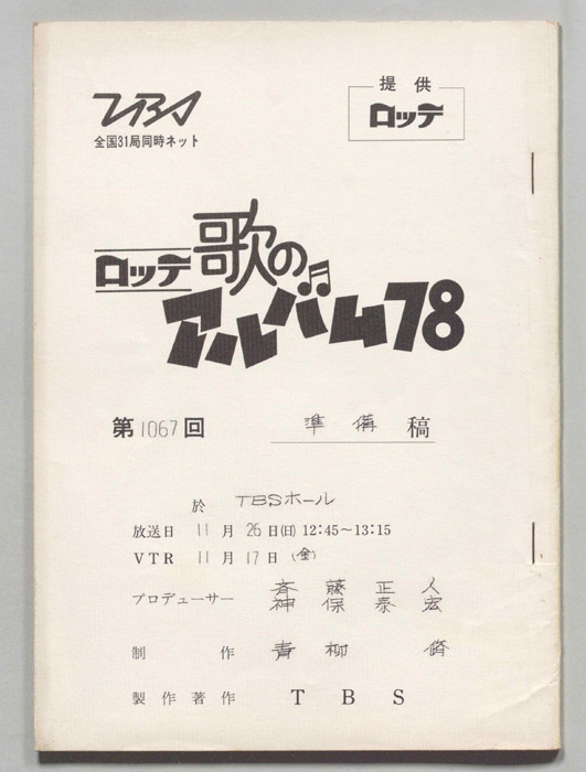 主な出演 : 西城秀樹,桜田淳子,野口五郎