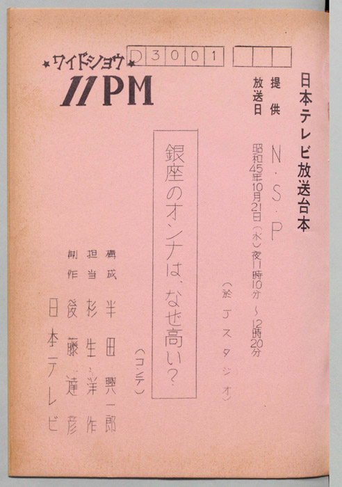 主な出演 : 青島幸男,八代英太,松島トモ子,野末陳平,真野博,モデルSOS,片野登喜子,野川リエ,田村デミ,ロイ・ジェームス,飯田蝶子,富永一朗,都家かつ江,古今亭志ん馬,応蘭芳,福西英三:全日本バーテンダー協会理事,石田穣:果