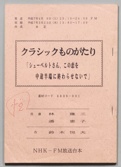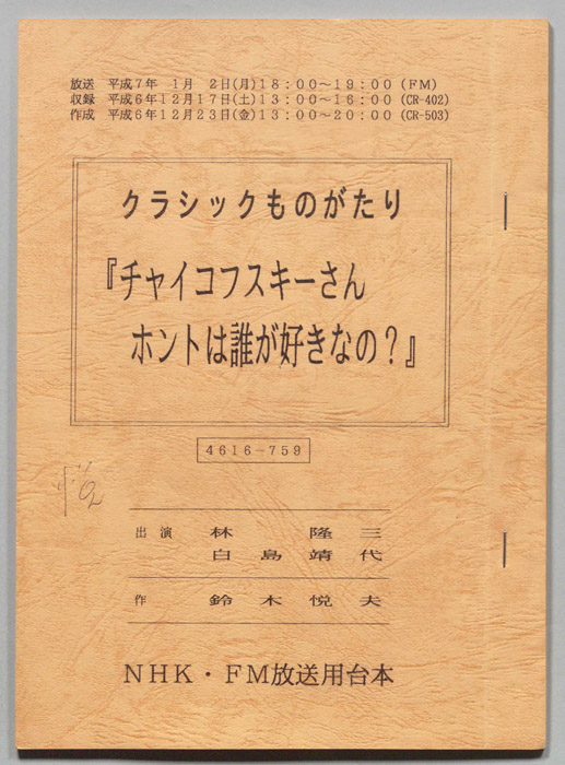 主な出演 : (司会)黒柳徹子,(バリトン)立川清澄,(二期会合唱団)/吉野恵美子,村上幸恵,大川陽子,木村のり子,柳沢悦子,(語)吉川繁男,(管弦楽)東京交響楽団,(指揮)尾高忠明