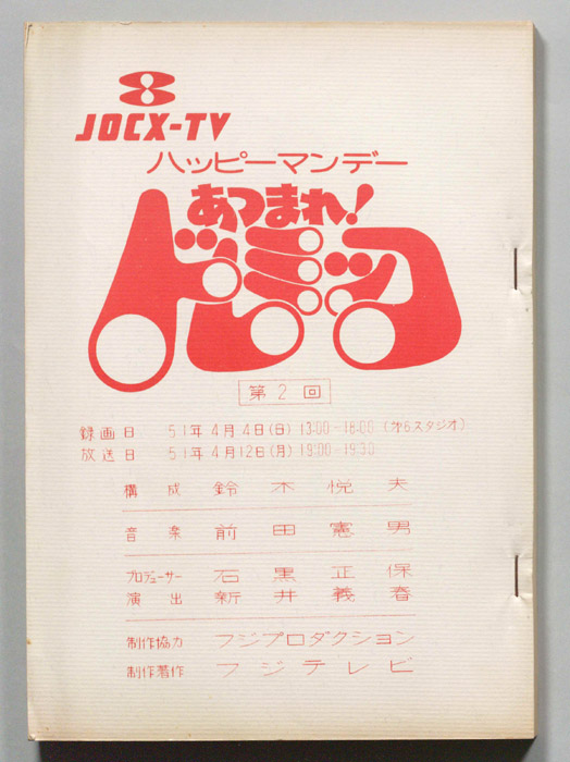 主な出演 : 大竹しのぶ,藤村俊二,黒沢裕一,藤島新,アップル,荒川少年少女合唱隊,(マスコット)マンデーくん,(ゲーム)小谷厚雄,(司会)石毛恭子,(演奏)ミリオンポップス・オーケストラ