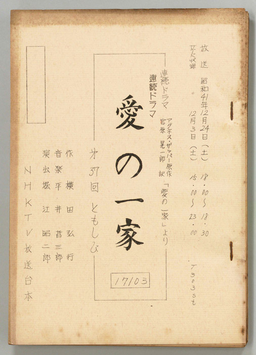 主な出演 : 千秋実,小山明子,鈴木正勝,池田秀一,珠めぐみ,石井浩,佐藤泉,大山尚雄,小峰千代子,桑山正一,浅野順子,吉田勝美,津野哲郎,滝那保代,(語り手)河井坊茶
