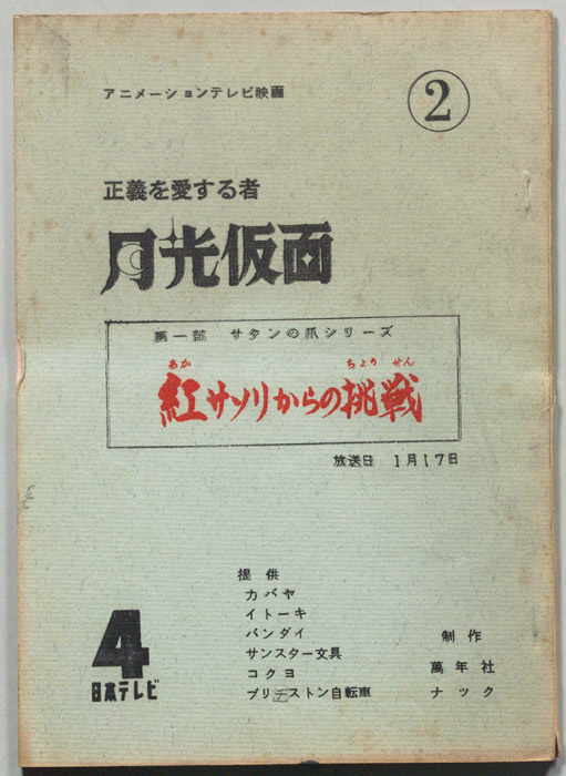 主な出演 :【月光仮面】 初の国産テレビヒーローものとして1958年2月から1959年7月までシリーズは5部まで放送された。探偵の祝 十郎は警察に協力して、様々な悪人や悪の集団と戦っていた。警察が危機に陥ると、どこからともなく現れる白いマスク、タ