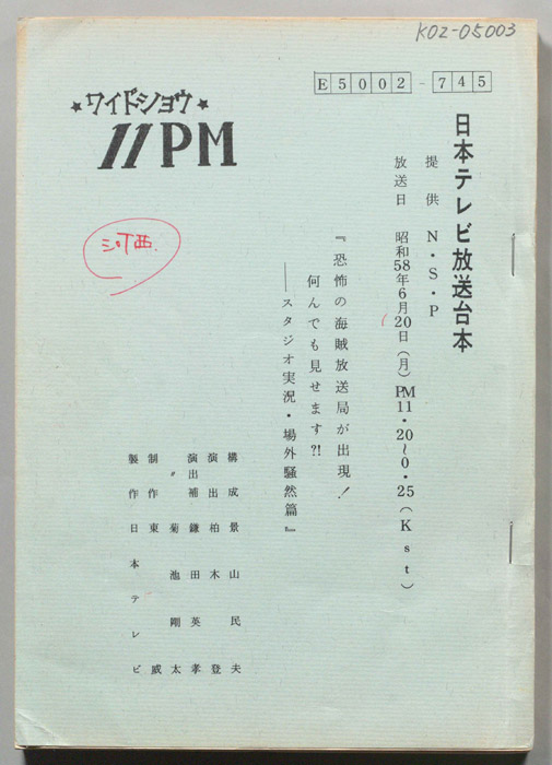 主な出演 : 大橋巨泉,いそのえいたろう,イヴ,珠瑠美,ルイス・藤尾,上野初美,野口姉妹,福田利子,藤田佳の実,杉原淳とニューサラブレッズ,(ナレーター)福留功男