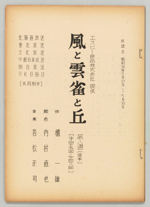 主な出演 : 三田佳子,川崎敬三,長岡輝子,黒柳徹子,沢村貞子,田辺靖雄,松本留美,山本紀彦,真屋順子,川地民夫,益田喜頓,石山健二郎