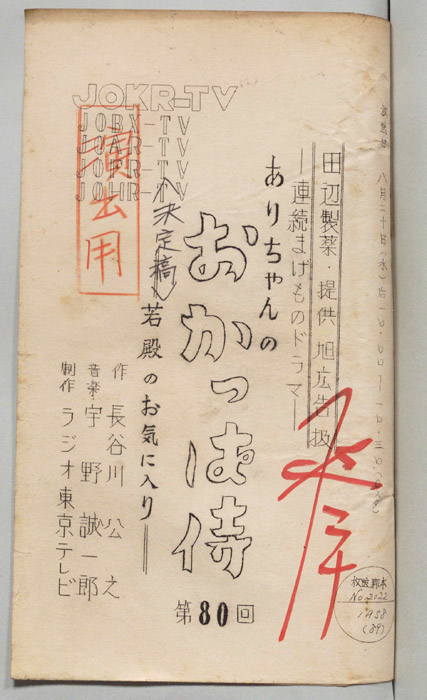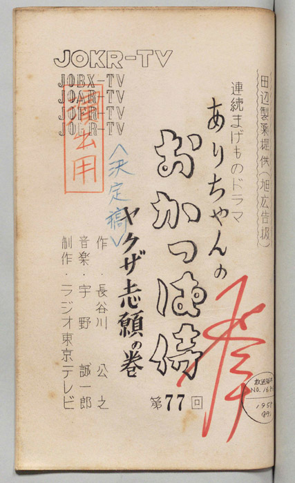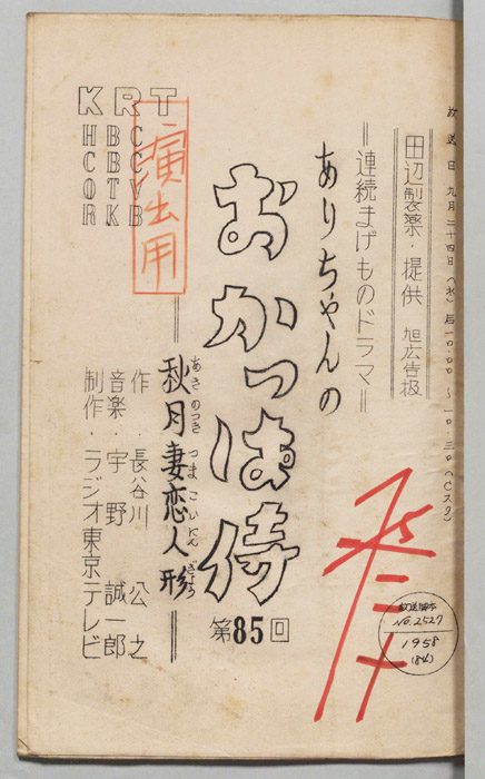 主な出演 : 宮城まり子,旭輝子,佐伯徹,宮崎恭子,汐見洋,南美江,加賀麟太郎,大沢真吾,赤尾関三蔵,安田千永子,劇団若草,劇団新芸- 作家 : 長谷川公之