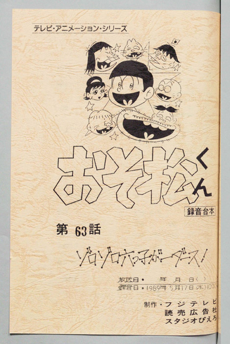 主な出演 : (イヤミ)肝付兼太,(チビ太)田中真弓,(デカパン)大平透,(ダヨーン)神山卓三,(おまわりさん)千葉繁,(おそ松)井上瑤,(トド松)林原めぐみ,(チョロ松)松本梨香,(ハタ坊)真柴摩利,(トトコ)松井菜桜子,(ベシ)水鳥鉄夫,(ママ)横【おそ松くん】平凡なサラリーマン『松野松造』と専業主婦の『松野松代』の夫婦の間に生まれた六つ子、『おそ松』『カラ松』『チョロ松』『一松』『十四松』『トド松』は皆が個性の強い性格をしていて曲者ぞろいで近所を巻き込んで、賑