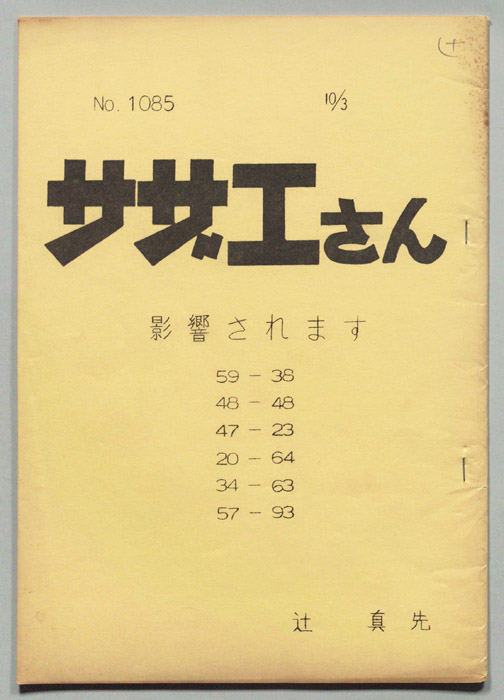 主な出演 :東京の静かな住宅地に住む「磯野家」には、父・波平、母・フネ、長女・サザエ、長男・カツオ、次女・ワカメが周囲の人々と共に、賑やかに暮らしていた。後にサザエはフグ田マスオと結婚して、長男・タラオが誕生し三世代家族として、昭