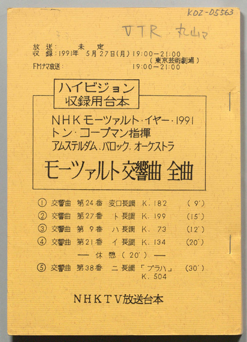 主な出演 : (管弦楽)NHK交響楽団,(合唱)東京混声合唱団,(ピアノ)木村かをり,(指揮)岩城宏之,小松一彦,(話)村山定男,丹羽正明