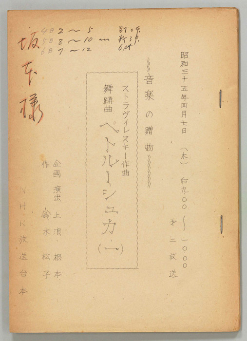 主な出演 : (手書き)巖金四郎,坂本和子,里見京子(?),加藤幸子(?),山内雅人(?),川久保惇,須永宏,高藤隆(?)