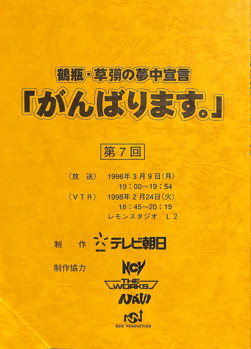 主な出演 : 笑福亭鶴瓶,草彅剛,西村知美,乾貴美子,松尾雄治,(ナレーター)飯塚昭三,大森章督,マリリン山田