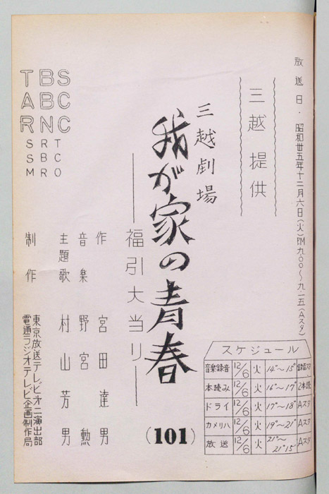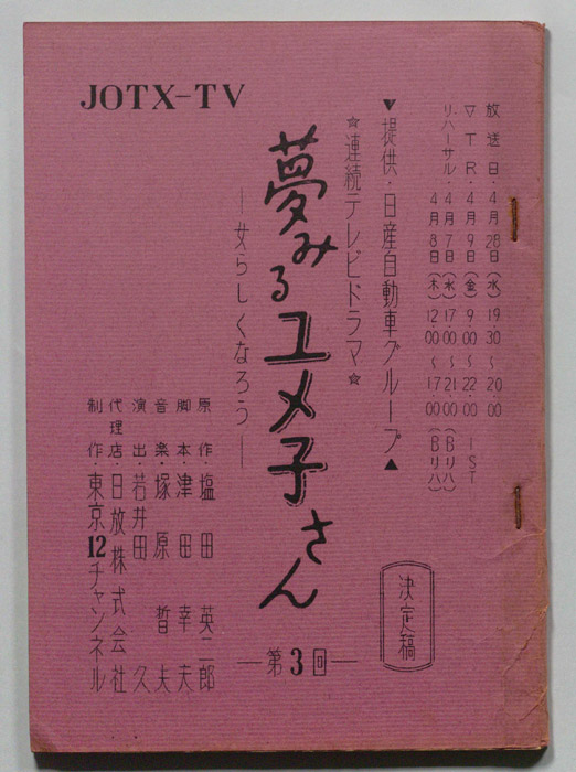- 放送局 : 東京12チャンネル(テレビ東京)