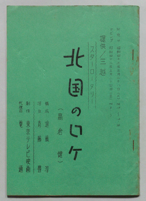 主な出演 : (手書き)高倉健,大木実,中村錦之助,藤間紫,藤純子,丘さとみ,宗方奈美,都蝶々,津川雅彦,明蝶,丹波哲郎,品川隆二,曽根晴美,大前均,須賀不二男,南都雄二