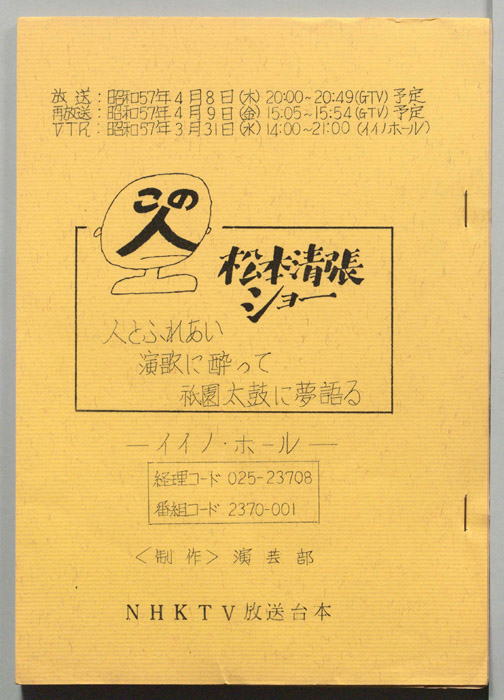 主な出演 : 松本清張,島田陽子,都はるみ,村田英雄,(司会)黒柳徹子