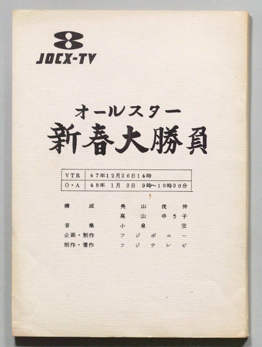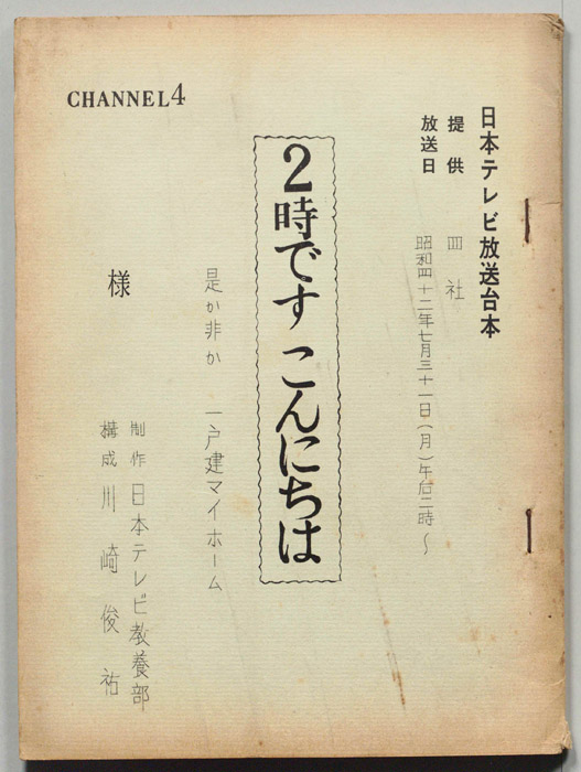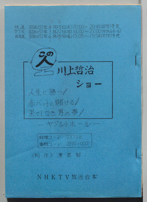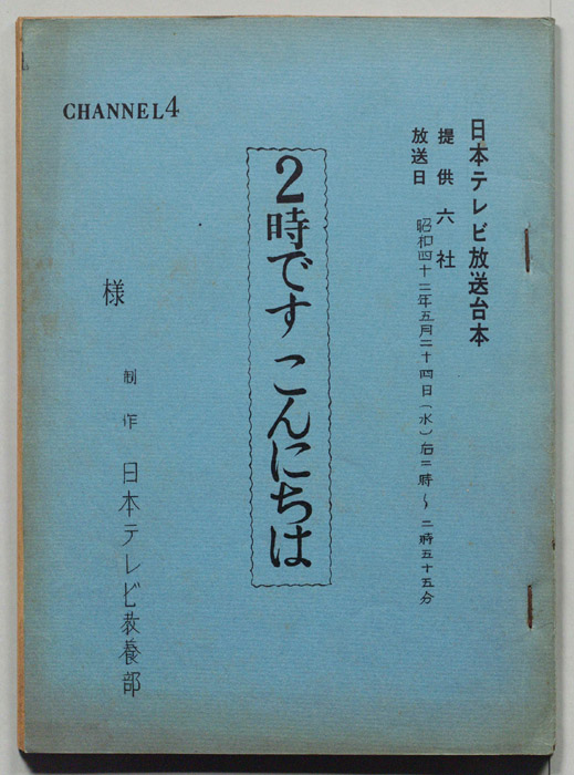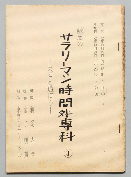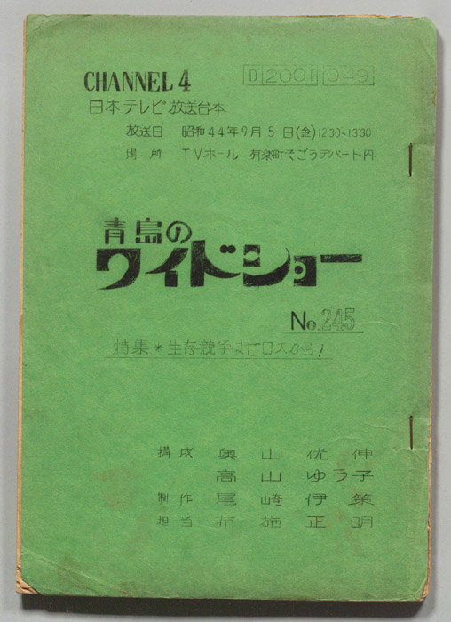 主な出演 : (司会)伊丹十三,高山ゆう子/江上トミ/長沢節,山野凱章,淡谷のり子,梅田晴夫,青学大学生4名,東大学生2名
