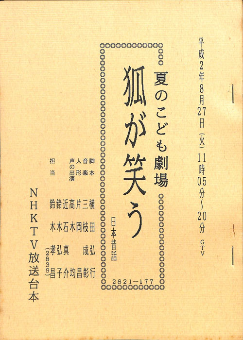主な出演 : 古今亭志ん輔,(声)肝付兼太,中尾隆聖,横沢啓子,高木均,DO!,(ぬいぐるみ)和甲拓,田上かよ,岡村知澄