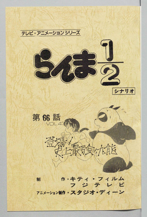 主な出演 : (乱馬:らんま)山口勝平,(あかね)日高のり子,(なびき)高山みなみ,(かすみ)井上喜久子,(早雲)大林隆之介,(玄馬:パンダ)緒方賢一,(帯刀)鈴置洋孝,(今条マリ子)小林優子,(大介)子安武人,(ひろし)辻谷耕史,(生徒A),(審【らんま1/2】無差別格闘家「早乙女玄馬」の息子「早乙女乱馬」は幼少の頃より無差別格闘流の修行に励みながら、中国へと渡る。だが、そこで父親と共に悲劇的な伝説が多く伝わる修行場「呪泉郷」で稽古中に不思議な泉に落ちたことにより、乱