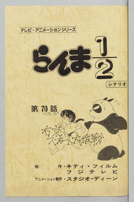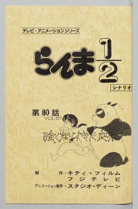 主な出演 : (乱馬:らんま)山口勝平,(あかね)日高のり子,(なびき)高山みなみ,(かすみ)井上喜久子,(早雲)大林隆之介,(玄馬:パンダ)緒方賢一,(幼い頃の乱馬),(幼い頃のあかね),(乱馬の母親:のどか)池田昌子,(あかねの母親)三幣香代,(寿司屋のおばさん)【らんま1/2】無差別格闘家「早乙女玄馬」の息子「早乙女乱馬」は幼少の頃より無差別格闘流の修行に励みながら、中国へと渡る。だが、そこで父親と共に悲劇的な伝説が多く伝わる修行場「呪泉郷」で稽古中に不思議な泉に落ちたことにより、乱