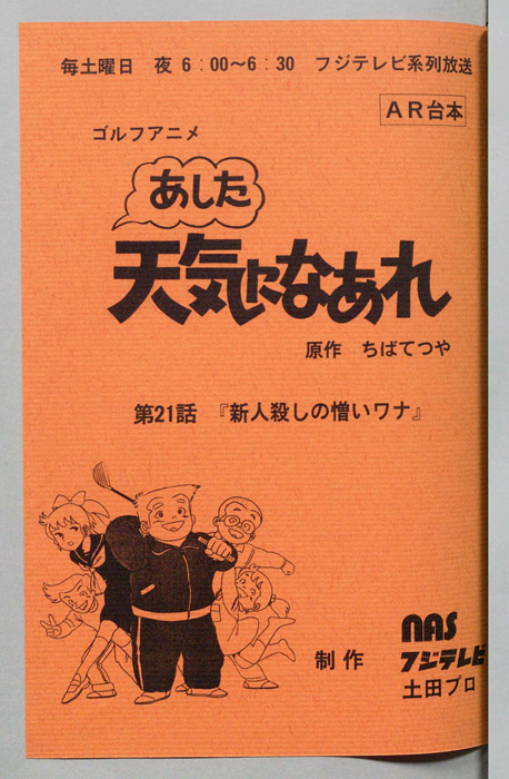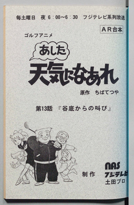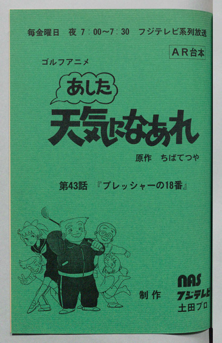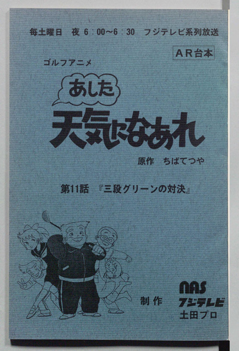 主な出演 : (向太陽)塩屋翼,(かあちゃん)丸山裕子,(向武二)伊倉一恵,(向攻三)坂本千夏,(向糸子)小粥よう子,(白石エツコ)富沢美智恵,(竜谷)小林清志,(岩森),(客),(客AB),(偉い人),(事務員AB),(初老の男)【あした天気になあれ】早くに父親を亡くし、食堂を営む母の手で育った「向太陽(むかい たいよう)」は、中学三年のとき、ふとしたきっかけでゴルフクラブを手にした。優れたセンスを持つ彼は、周囲からプロになることを勧められ、太
