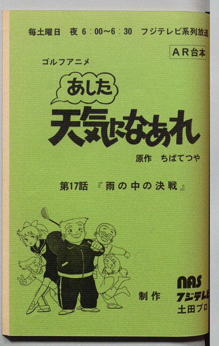 主な出演 : (向太陽)塩屋翼,(白石エツコ)富沢美智恵,(竜谷)小林清志[(大野)大竹宏,(ルリ子)小宮和枝,(遠山)平森信吾,(南)飛田展男,(ゴルフ場の主人)清川元夢](柴山),(Na)【あした天気になあれ】早くに父親を亡くし、食堂を営む母の手で育った「向太陽(むかい たいよう)」は、中学三年のとき、ふとしたきっかけでゴルフクラブを手にした。優れたセンスを持つ彼は、周囲からプロになることを勧められ、太