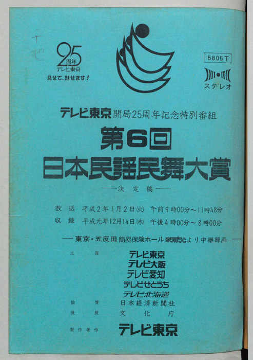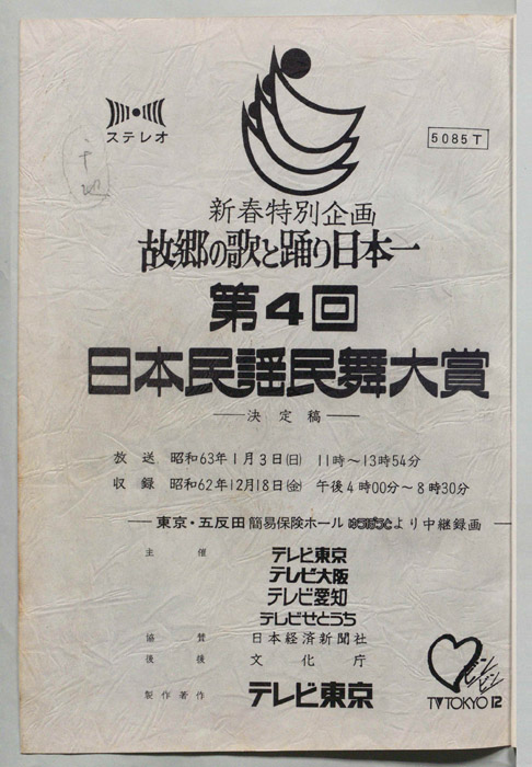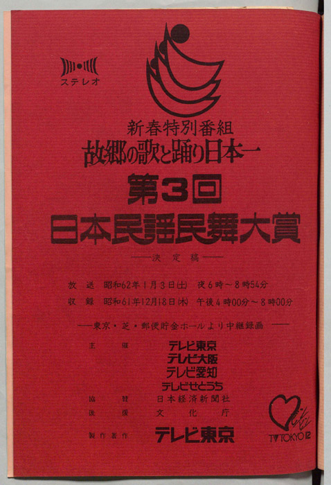 主な出演 : 大塚文雄,小野花子,金沢明子,小杉真貴子,後藤清子,津軽家すわ子,つくだ貞夫,成田武士,早坂光枝,原田直之,三浦隆子,(司会)伊東四朗,桑田靖子,(踊り)豊川ひさ子,おさな会,民族芸能文化連盟,民謡楽成田会,弘前石川流やまぶき会,(和