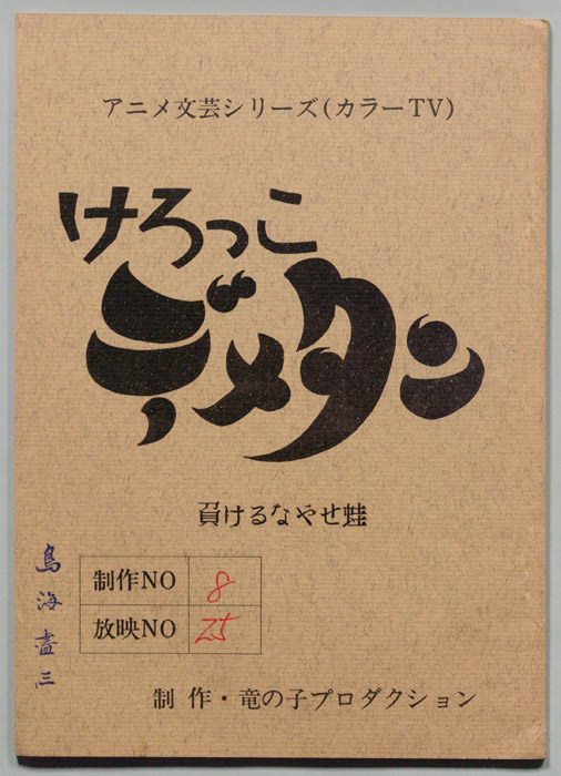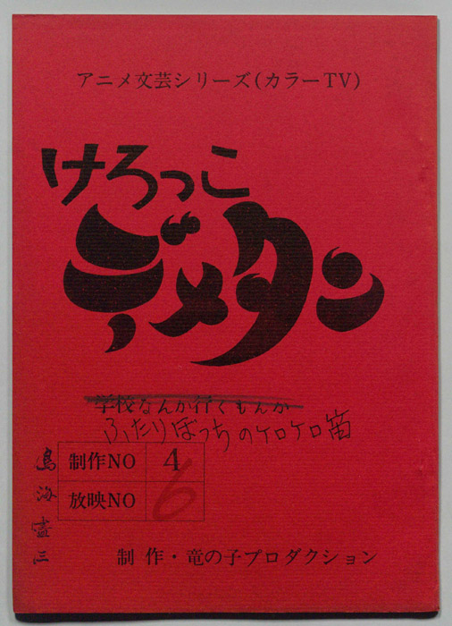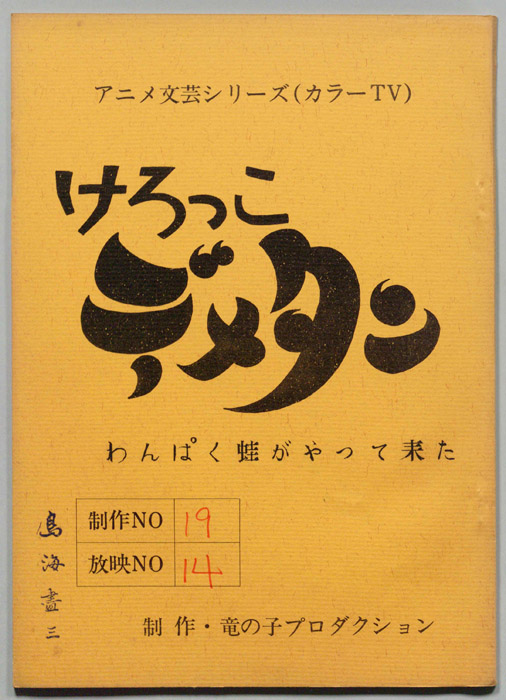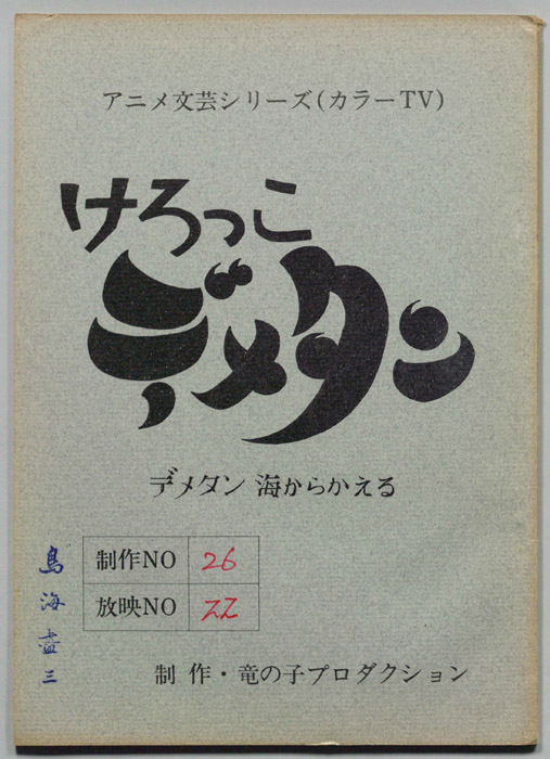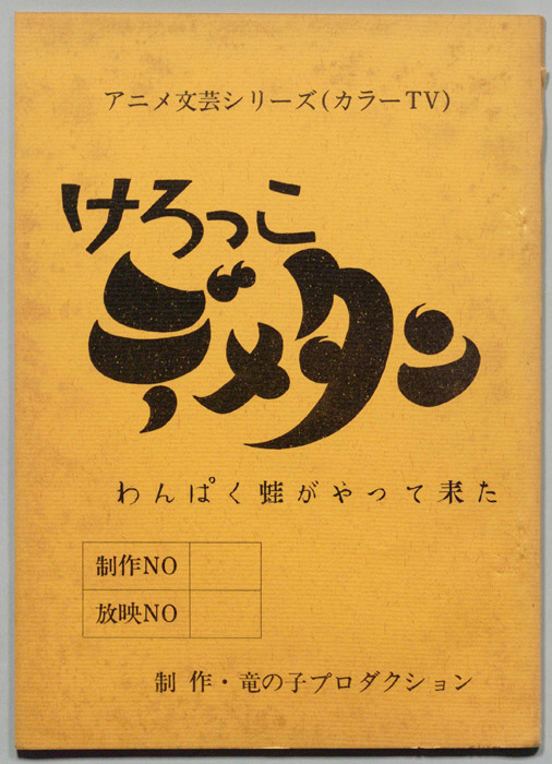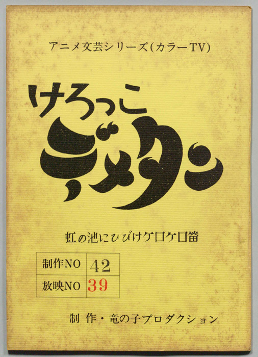 主な出演 :『けろっこデメタン』森田歩 アマガエルのデメタンは、元々暮らしていた池がイモリたちに襲われ、兄弟を失い、両親と共に虹のお池へと移り住んだ。 おもちゃの露天商を営む両親の手伝いで学校に通うことも出来ないデメタンだったが、虹