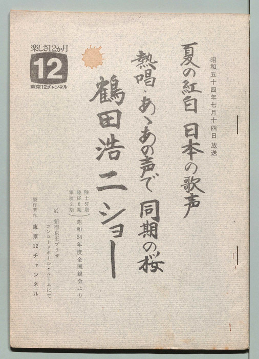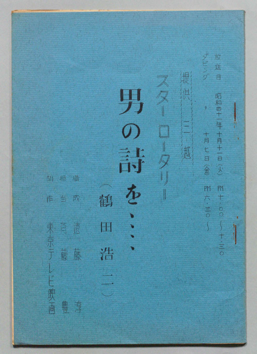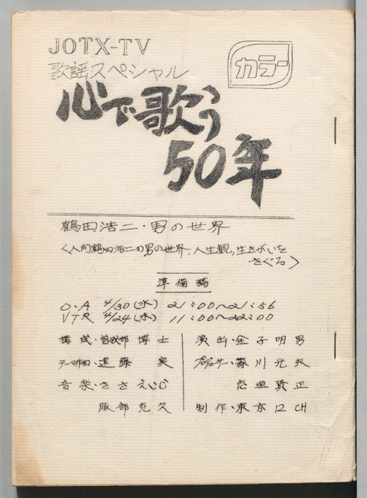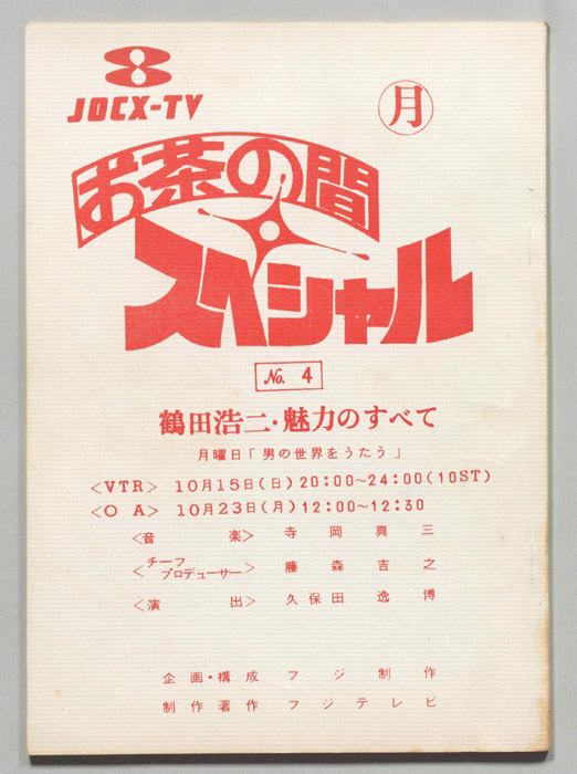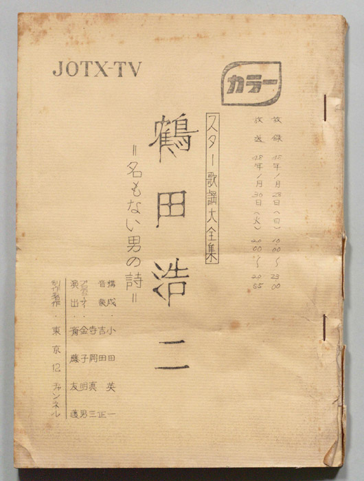 主な出演 : [鶴田浩二,浮田佐武郎,館敬介,増田順二,髙田敏江,髙橋豊子,木下雅弘,康本佳男,土方孝哉,柏まさ子]- 作家 : (構成)西野皓三,宮田達男,阿久悠(脚本)宮田達男,阿久悠
