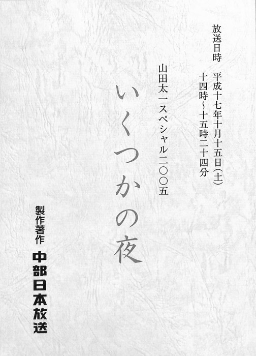 主な出演 : 鶴田真由,仲村トオル,金子賢,さとう珠緒,長嶺尚子,高木りな,木下ほうか,大島蓉子,川俣しのぶ,大谷直子,山崎努- 作家 : 田向正健
