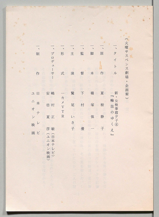 主な出演 : 岩下志麻,国広富之,鷲尾いさ子,益岡徹,加藤武,小坂一也,家田荘子,山下真司,渡瀬恒彦,西村晃