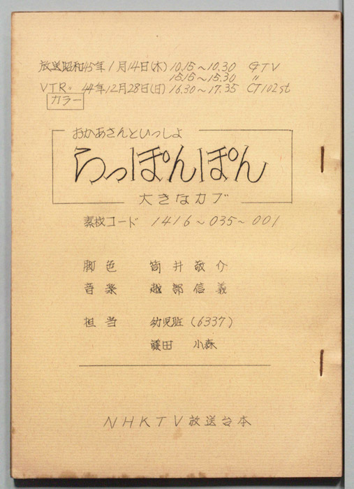 主な出演 : 真理ヨシコ,(声の出演)柳沢真一,古賀伸一,川久保潔,新道乃里子,真理ヨシコ,(人形操作)古賀伸一,星野サエ,宮崎雅子,鹿島佳子,中村悦子,吉村福子,(演奏)新室内楽協会,(コーラス)ボーカル・ショップ