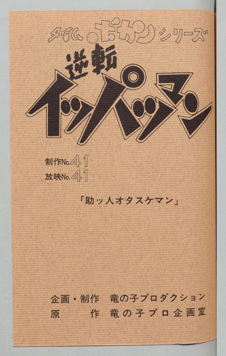 主な出演 : [豪速九(イッパツマン):富山敬,放夢ラン:原えりこ,ハル坊:つかせのりこ,2-3:山本正之,ムンムン:小原乃梨子,コストネン:八奈見乗児,キョカンチン:たてかべ和也,ピーコ:横尾まり,セーコ:青木和代,窓際社員:広瀬正志→龍田直樹,ヤストアンデル北部支社の重役三人にタイム運搬の妨害を命じる。 タイムリース社でメカの整備を担当している「豪 速九」は超能力の素質を持っており、シャレコーベリース社の重役三人が変身したクリーン悪トリオが妨害に現れピンチになった時にイッパツマンとなって駆けつける。 イ