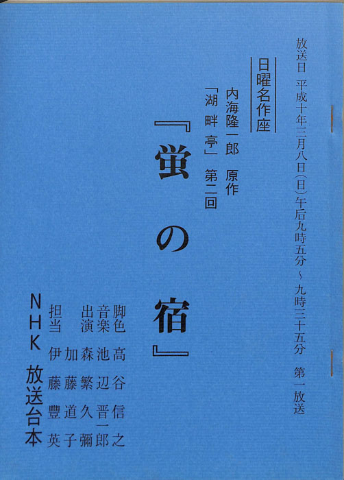 主な出演 : 妹尾洸,金田憲明,山田一善,河合宏,関裕志,渡部猛,美津井祐子,山本恵美子,森篤夫,桑原たけし,依田英助,飯塚昭三,林家源平,三木敏彦,濱島夏子,(ナレーター)政宗一成- 作家 : 小松江里子