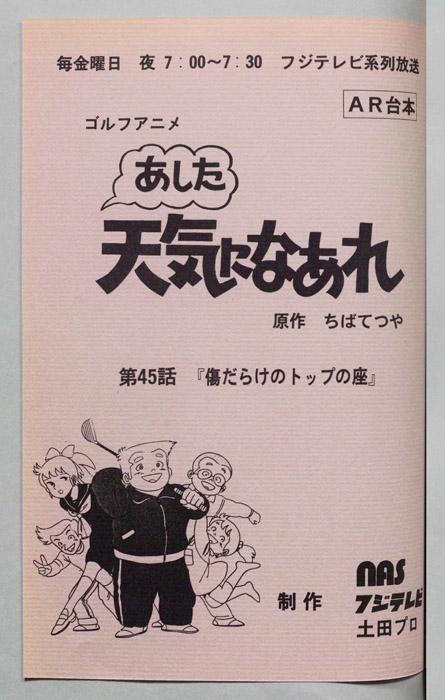 主な出演 : (向太陽)塩屋翼,(白石エツコ)富沢美智恵,(竜谷)小林清志,(日吉),(坂本),Na),(委員),(ギャラリー①②③④),(その他ギャラリー)【あした天気になあれ】早くに父親を亡くし、食堂を営む母の手で育った「向太陽(むかい たいよう)」は、中学三年のとき、ふとしたきっかけでゴルフクラブを手にした。優れたセンスを持つ彼は、周囲からプロになることを勧められ、太