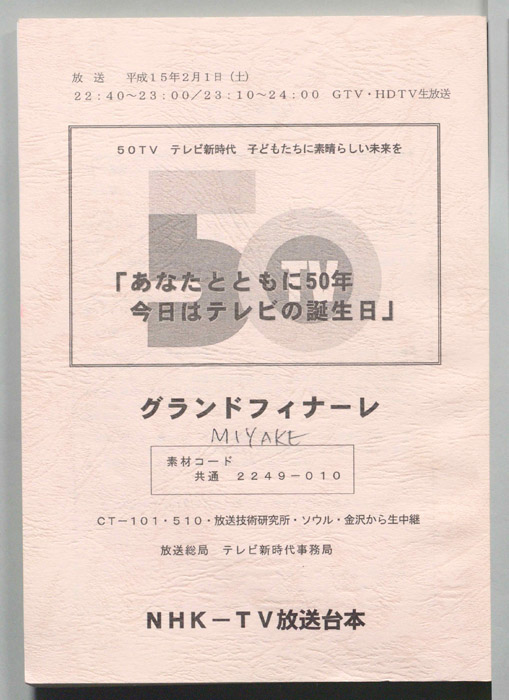 主な出演 : 秋元康,松任谷由実,仲代達矢,石坂浩二,糸井重里,ユンソナ,チョ・ソンモ,YOSHIKI,チェン・ミン,上川隆也,朱旭,hiro,(司会)黒柳徹子,三宅民夫,武内陶子,桜井洋子,国井雅比古,堀尾正明,森田美由紀,有働由美子,島