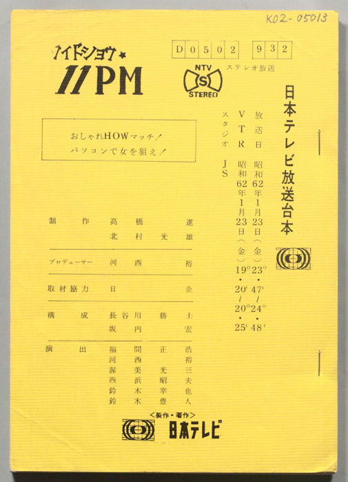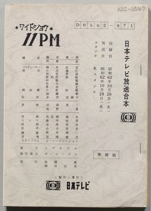 主な出演 : (司会)藤本義一,真理アンヌ,(バーテン)野村頻紹,(カバーガール)山崎晶子/カルーセル麻紀,夏木マリ,高橋基子,望月まり子,摩耶かほり,花柳雅人,日本舞踊アカデミー,梅田晴夫,与儀マリ,久保田光恵,はな寛太・いま寛大,(ナレーター)坂本和子