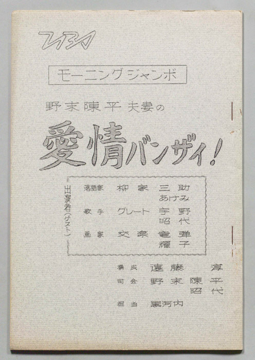 主な出演 : 大沢嘉子,円山雅也,吉武輝子,林家三平,ヘレンヒギンス,西真澄,梅田晴夫,ハーディ・エイミーズ,名和好子