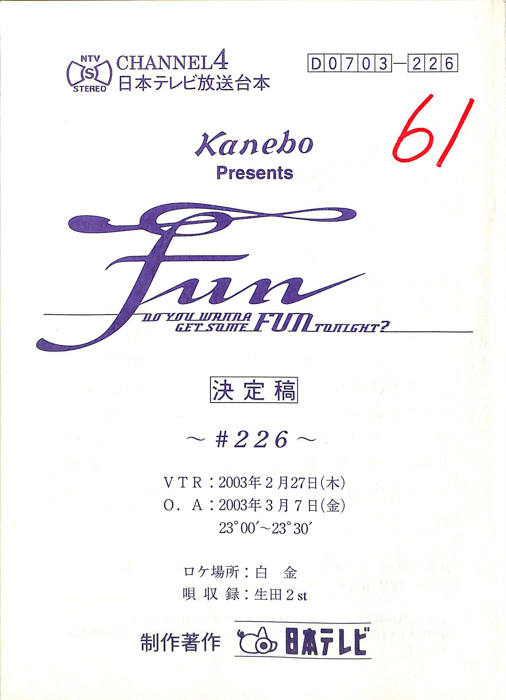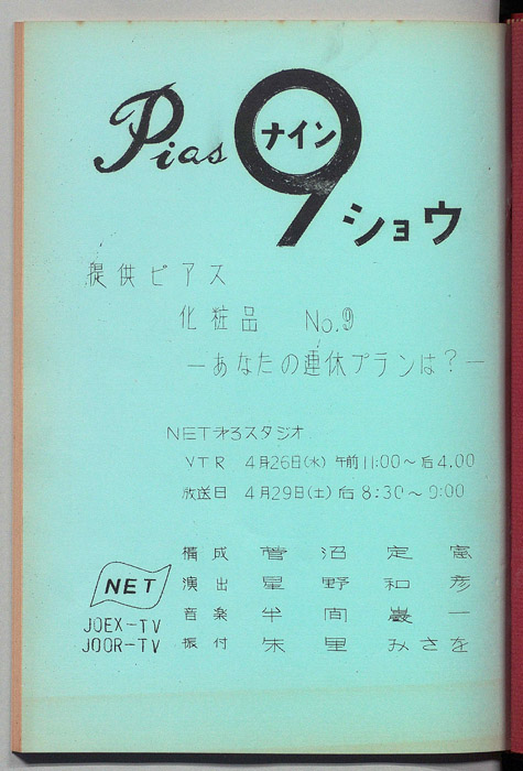 主な出演 : 坂本九,森山加代子,ダニー飯田とパラダイスキング,キムチ・キャッツ,ファッションモデル4名,カバーガール1名
