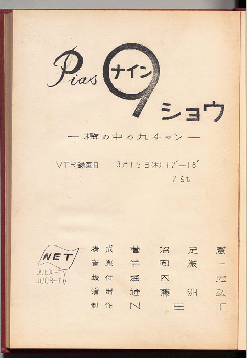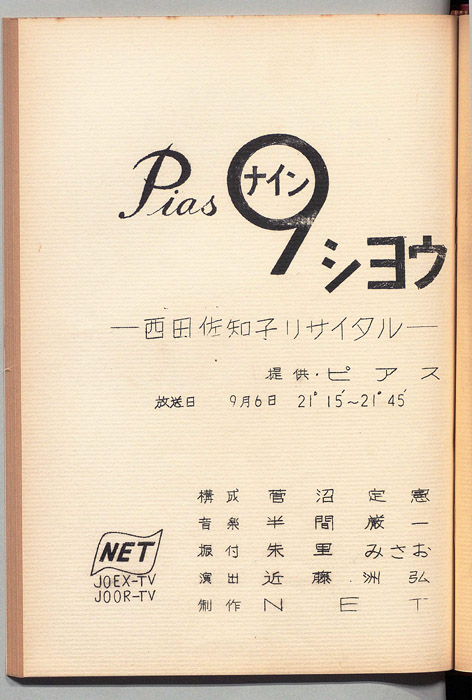 主な出演 : 西田佐知子,佐山俊二,小坂照男,西田さんの姉,木元教子,朱里みさおモダンダンサーズ,(演奏)宮間利之とニューハード,(コーラス)東京ルナアルモニコ