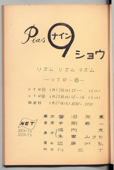 主な出演 : 坂本九,森山加代子,西田佐知子,かまやつヒロシ,ペアバンビ,牟田悌三,ダニー飯田とパラダイスキング,朱里みさを,モダンダンサーズ,ノーリン・ライト,ベニー・コーベ,高山愛子,新崎美智子,木元教子,(演奏)宮間利之とニューハード