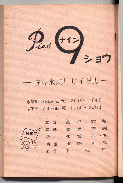 主な出演 : 佐々木功,田辺エイ子,五喜田昭一とロリー・ポップス,朱里みさおとモダン・ダンサーズ,佐々木君のご両親,津川雅彦,井野碩哉,木元教子,(ナレーター)北条美智苗,(演奏)宮間利之とニューハード,(コーラス)東京ルナ・アルモニコ